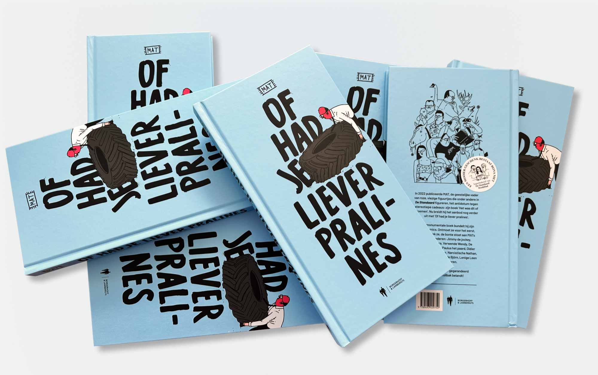 In 2022 publiceerde MAT, de geestelijke vader van roze, vlezige figuurtjes die onder andere in De Standaard figureren, hét antidotum tegen stereotiepe cadeaus: zijn boek Het was dit of bloemen. Dit jaar breidt hij het aanbod nog verder uit met Of had je liever pralines?